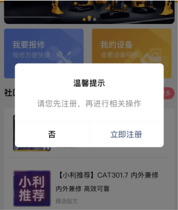 未注册的用户需先完成注册,才可以进行报修操作;点击“立即注册”;