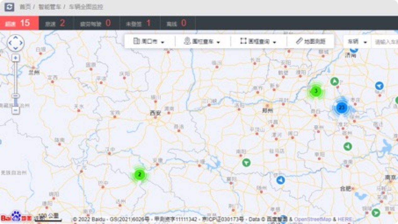 随时随地全方位掌握车辆动态 车辆和货物可视化跟踪 车辆围栏管理,异常报警提醒 车辆运行油耗管理监测 车辆疲劳驾驶、超速、安全监控手段 大数据平台管理