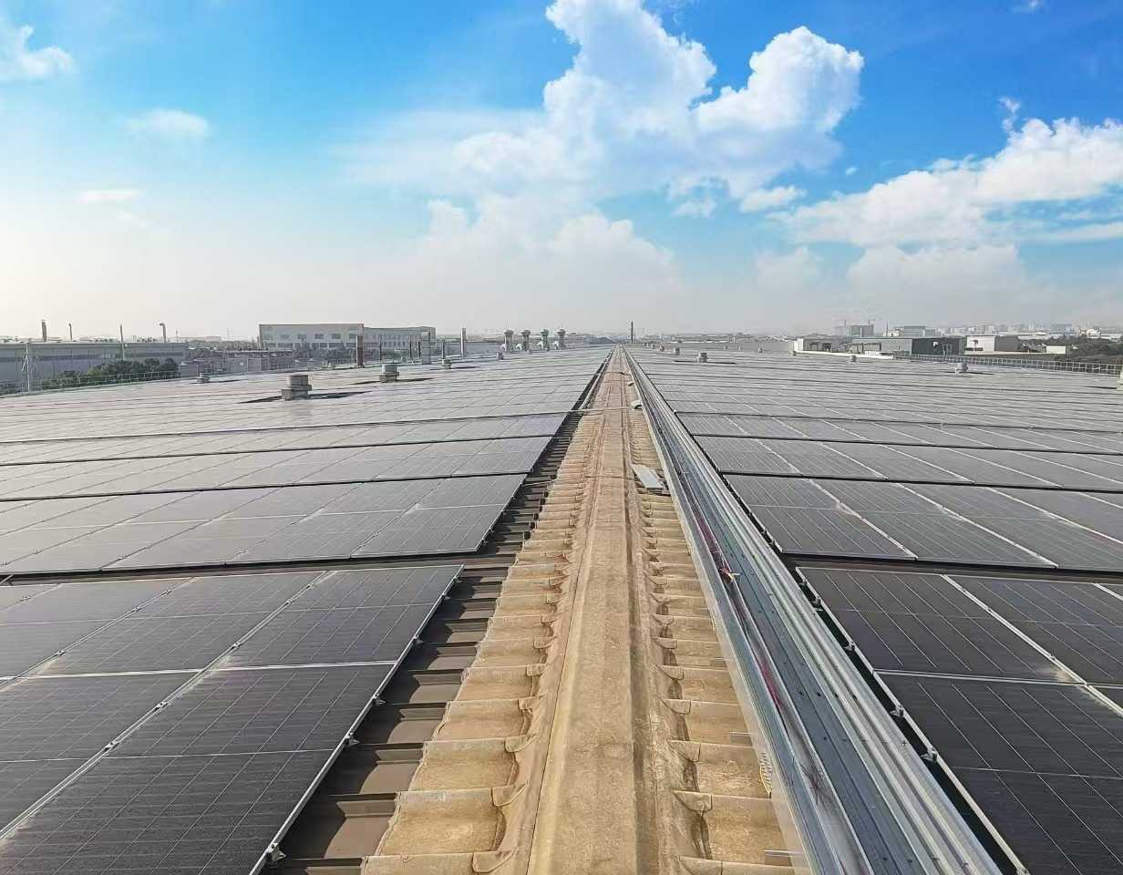 并网功率:1089KWp 组件类型: 高效多晶硅组件 安装类型:彩钢瓦屋顶安装